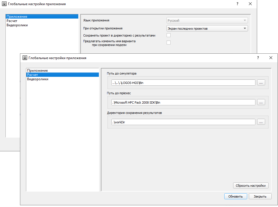 Глобальные настройки приложения – это такие настройки, которые не меняются от запуска к запуску и не зависят от загруженного проекта. Глобальные настройки делятся на категории: