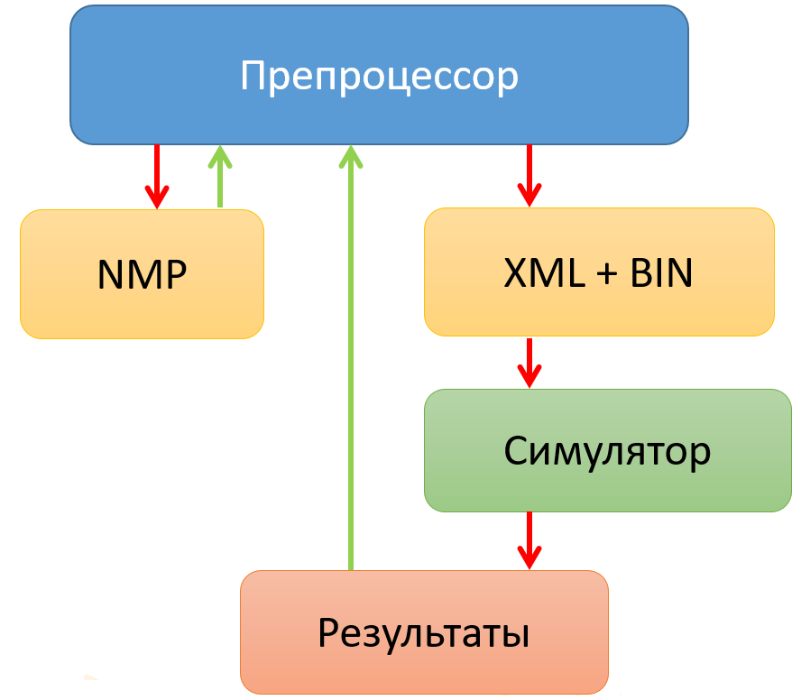 Рисунок 1.3.2.1 - Схема взаимодействия симулятора с пре- и постпроцессором¶